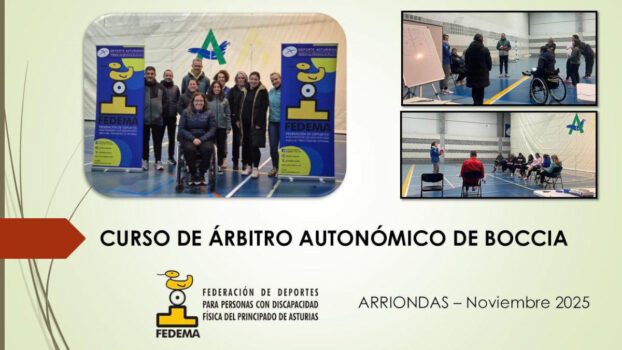 Este fin de semana se ha celebrado en Arriondas un Curso de Árbitro Autonómico de Boccia, con ocho participantes e impartido por Ana Isabel Fajardo y Hugo Álvarez del Comité Nacional de Árbitros y Jueces de Boccia y Slalom de la FEDPC.