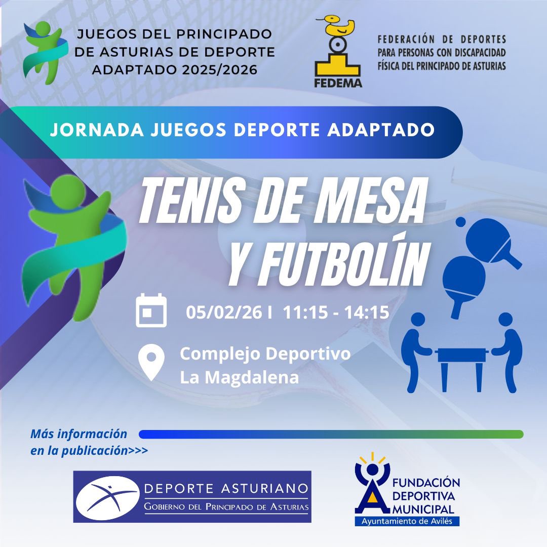 El 5 de Febrero se realizo en el complejo deportivo de La Magdalena en Avilés una nueva jornada de juegos adaptados, esta vez centrados en Tenis de Mesa y Futbolín.